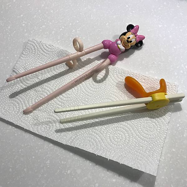 其實,早在一兩個月前,就買了可愛Edison米妮學習筷,吖星星雖然好奇、想學大人用筷子的企圖也強烈,但似乎有些力不從心的港覺。。。媽媽自己試拿了一下...覺得...嗯...似乎被可愛米妮造型給矇了雙眼XD