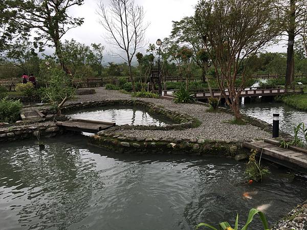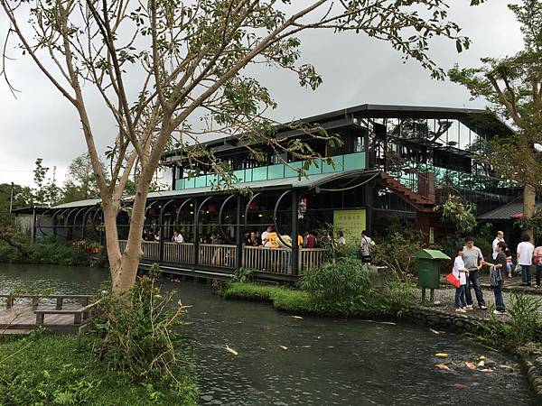 八甲魚場主題餐廳的兩邊分別是觀賞魚池和養殖魚池,除了鱘龍魚、苦花魚的養殖,這裡還是全台產量最大的香魚養殖場噢!觀賞池則設計了多個木棧平台和步道,讓遊客們可以更親近這裡的自然,餐廳入口側還設有伴手禮販賣部。