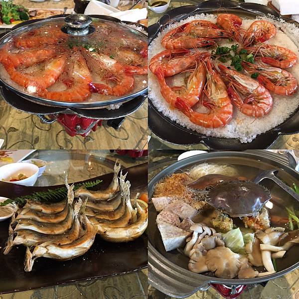 哎喲喲~「鹽焗海大蝦」新鮮大蝦躺臥在雪白白的粗鹽上頭,讓眾人眼巴巴的期待著它們由黑翻紅,最終入口的是Q彈鹹鮮的蝦肉;「椒鹽烤香魚」連歪頭翹尾的角度都整齊劃一,擠上檸檬汁這味兒就對了;「芋香米粉鮮蟹鍋」一上桌,看那蟹、菇、芋頭、蛋酥與鮮蔬,就知道這鍋湯料有多麼值得吞著口水等待嗆滾的那一刻,嚐一口~蛋酥的香、芋頭的鬆、蟹味的鮮、菇與蔬的甜全都嘴裡了,回味!