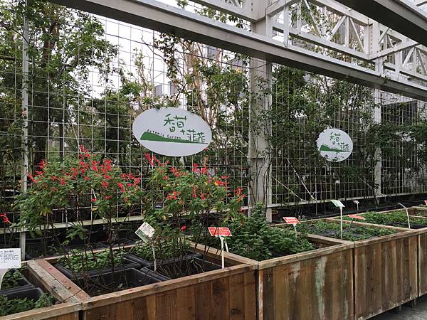 二樓規劃為被香草花卉簇擁的天空步道,還有一些休憩的坐位。