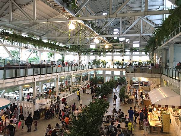 陰雨的假日,讓這個頗富盛名的地方聚集了不少人潮,入園費每人$100可抵園內消費,入口處的兩旁迎接遊客的就是各式香草植物,偌大挑高的室內空間依著建築設計引入了一些自然的光線,走在裡頭也能行光合作用的概念XD。
